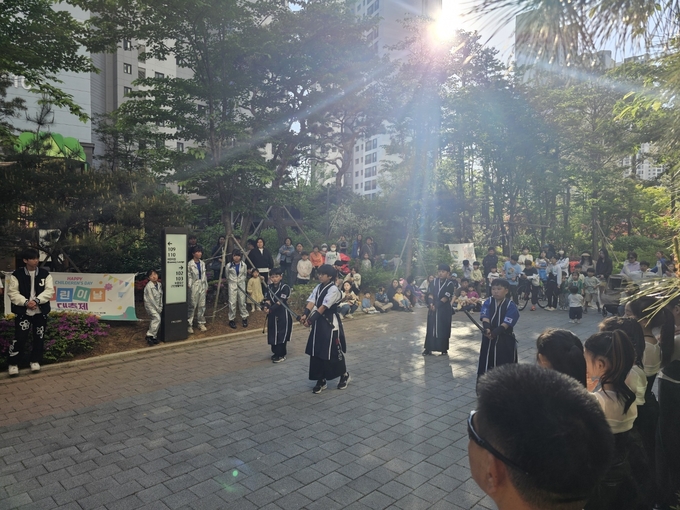 아파트단지 광장에서는 올해 어린이날 행사로 나눔 마당, 공연마당 등의 테마로 구성됐다.