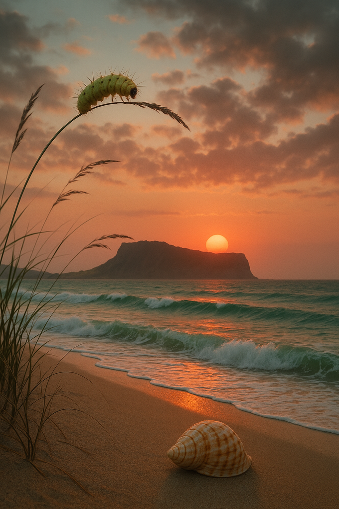 우도의 하얀 모래 위