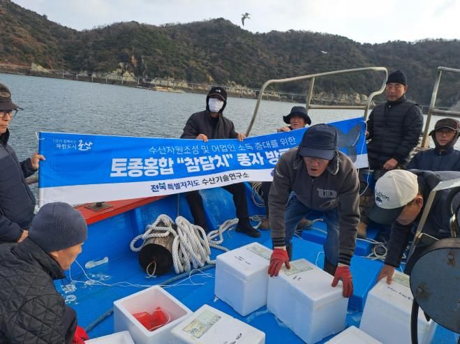 [참좋은뉴스= 기자] 군산시가 전북 수산기술연구소에서 최초로 종자생산에 성공한 참담치 치패 10만 미를 10일 어청도 해역 마을 어장에 방류했다.