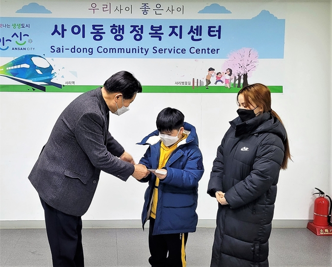 안산시 상록구 사이동(동장 양남종) 행정복지센터 3층 회의실에서 지난 1월 19일 오후 2시 반월산단에 소재한 주) A 산업이 생계가 어려운 저소득층 가정에 금일봉을 전달했다.