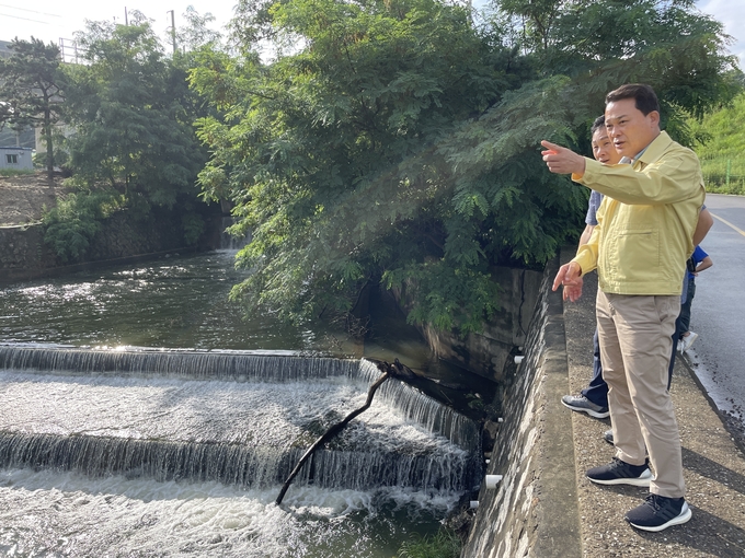 [참좋은뉴스= 관리자 기자] 지난 7월 17일 국민의힘 안산 상록갑 김석훈 당협위원장은 반월동 관계 공무원들과 함께 반월저수지와 삼천천 일대 집중호우 대비 현장점검에 나섰다.