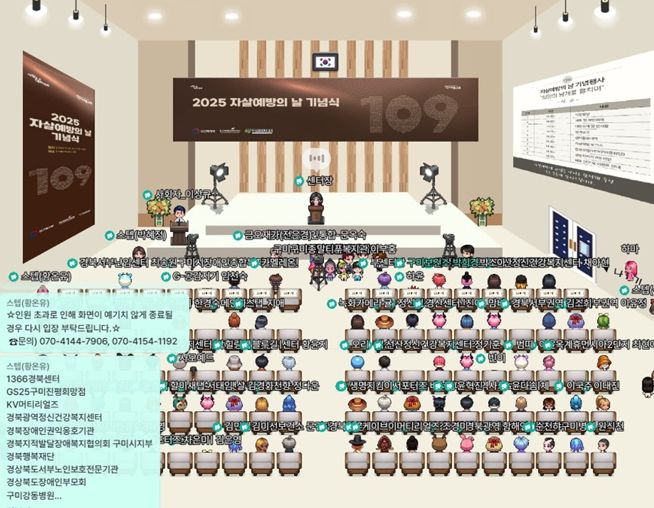 [참좋은뉴스= 기자] 구미시는 정신건강과 자살예방의 중요성을 알리기 위해 지난 1일 메타버스 플랫폼(ZEP) ‘구미정신건강월드’에서 '제13회 자살예방의 날 기념행사-희망의 날개를 펼치며'를 개최했다.
