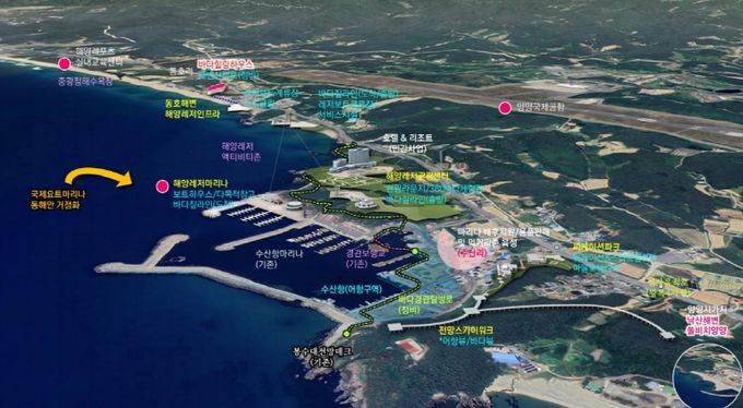 재정사업에는 해양레저 마리나와 해양레저관광센터 조성을 비롯해 씨케이션파크, 전망 스카이워크, 바다경관 산책로, 동호해변 해양레저 인프라 구축 등이 포함된다. 민간사업으로는 지하 5층·지상 18층 규모의 432실 호텔앤리조트 건립이 추진된다.