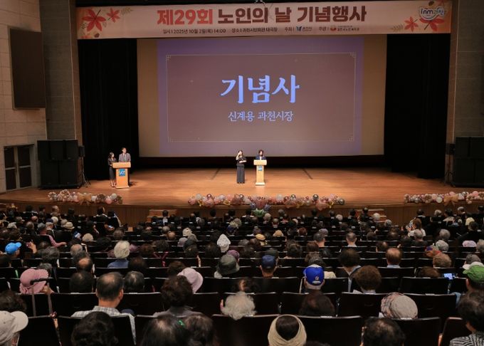 [참좋은뉴스= 기자] 과천시는 2일 시민회관 대극장에서 ‘제29회 노인의 날 기념식’을 열었다. 시가 주최하고 과천시노인복지관이 주관한 가운데 열린 이날 행사에는 지역 어르신 1천1백여 명이 참석했다.