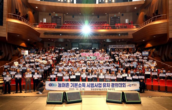 [참좋은뉴스= 기자] 영광군은 지난 10월 2일 오후 2시, 영광문화예술의전당 대공연장에서 '농어촌기본소득 시범사업 유치 결의대회'를 성황리에 개최했다.