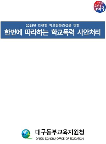 [참좋은뉴스= 기자] 대구동부교육지원청은 관내 전체 초등학교 생활교육 담당 교사를 대상으로 ‘한번에 따라하는 학교폭력 사안처리’ 자료집을 배부했다고 밝혔다.