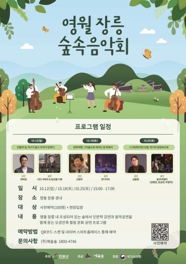 [참좋은뉴스= 기자] 영월군은 오는 10월 12일, 18일, 25일 오후 3시부터 5시까지 세계유산 장릉 경내에서 ‘영월 장릉 숲속 음악회’를 개최한다.