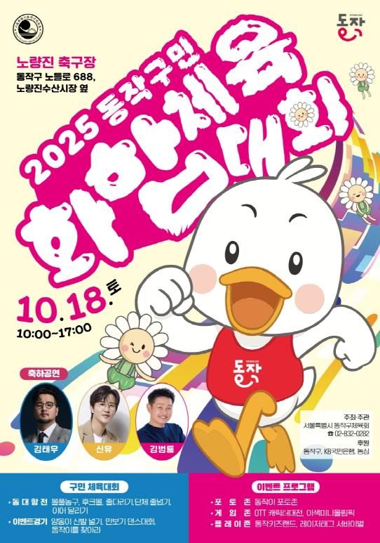 [참좋은뉴스= 기자] 동작구가 오는 18일 오전 10시 노량진축구장(노들로 688)에서 ‘2025 동작구민 화합 체육대회’를 개최한다고 밝혔다.
