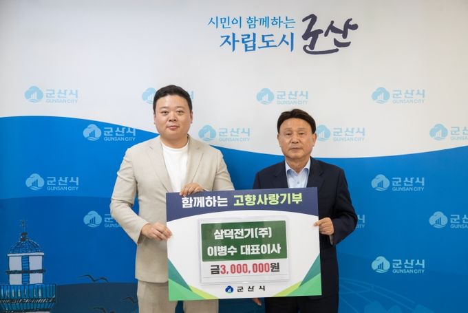 [참좋은뉴스= 기자] 군산시는 삼덕전기(주) 이병수 대표이사가 고향사랑기부금 300만 원을 기탁했다고 밝혔다.