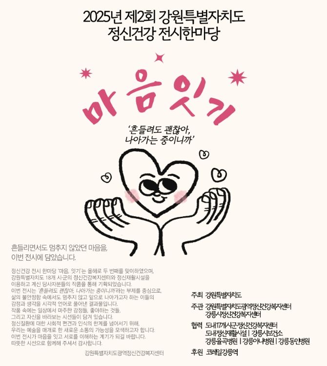 [참좋은뉴스= 기자] 강릉시는 10월 13일부터 오는 19일까지 강릉역에서 '2025년 제2회 정신건강 전시한마당'을 개최한다.