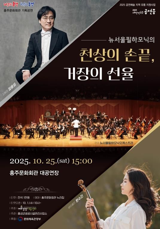 [참좋은뉴스= 기자] 깊어가는 가을에 어울리는 정통 클래식 오케스트라 공연 ‘뉴서울필하모닉의 천상의 손끝, 거장의 선율’이 오는 25일 오후 3시, 홍성군 홍주문화회관에서 열린다.