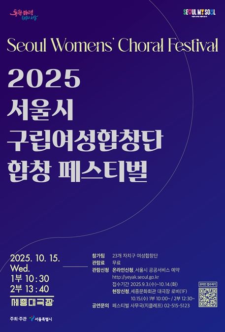 김태희 서울시 문화본부장은 “합창은 각기 다른 목소리가 모여 하나의 아름다운 화음을 만들어내는 예술”이라며, “이번 합창 페스티벌은 23개 자치구 주민들이 음악 안에서 하나가 되는 소중한 화합의 장이자, 서울시민 모두를 위한 멋진 문화 체험의 기회가 될 것”이라고 말했다. 이어 “깊어가는 가을, 가족과 친구의 손을 잡고 공연장을 찾아 아름다운 선율과 함께 따뜻한 감동을 느끼시길 바란다”고 밝혔다.