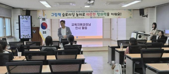 [참좋은뉴스= 기자] 경상북도영양교육지원청은 2025년 10월 14일 영양교육지원청 대회의실에서 ‘그림책 슬로리딩 놀이로 따뜻한 창의력을 키워요’라는 주제로 관내 유치원, 어린이집 및 초등 1, 2학년 학생과 학부모를 대상으로 2025 유치원·초등 저학년 보호자 및 책나눔 자원봉사자 연수를 개최했다.