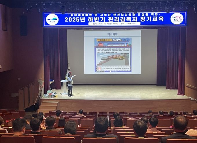 [참좋은뉴스= 기자] 예산군은 지난 13일 군청 추사홀에서 중대재해 예방과 안전한 근로환경 조성을 위해 ‘2025년 하반기 관리감독자 집체교육’을 실시했다고 밝혔다.