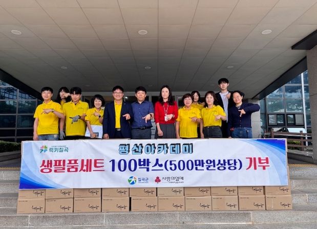 평산아카데미, 칠곡군에 생필품세트 100박스 기부