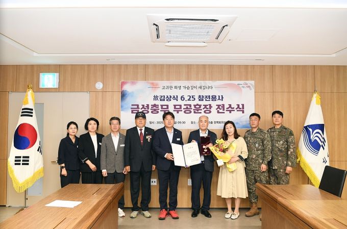 [참좋은뉴스= 기자] 부산 동래구는 지난 13일 6․25전쟁에 참전해 무공을 세운 고(故) 김상식님의 자녀 김형원씨에게 금성충무 무공훈장과 훈장증을 전수했다.