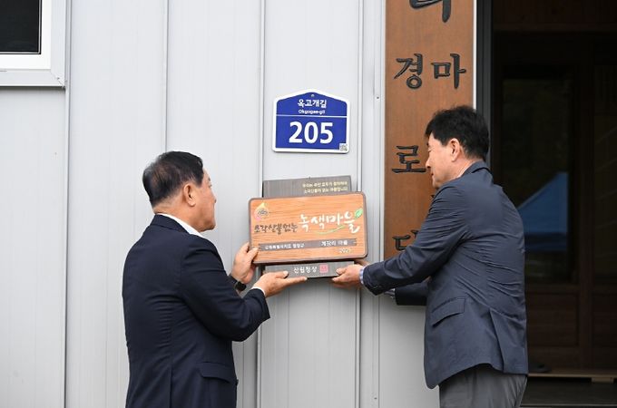 [참좋은뉴스= 기자] 평창군은 14일 오전 11시, 평창읍 계장리 마을회관에서 ‘소각 산불 없는 녹색마을’의 우수마을로 선정된 계장리에 현판을 수여했다.