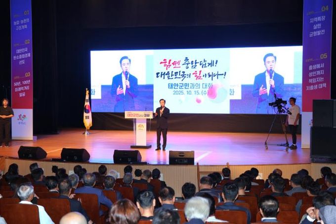 이어진 군민과의 대화에서는 약 600여 명이 참석한 가운데 △석탄 화력발전소 폐지지역 지원 특별법 제정 관련 지속적 관심 △안면도 관광지구 개발 사업 조속 추진 △가로림만 해상교량 건설 △지방도634호(원북~방갈) 확포장 등 다양한 의견이 제시됐다.