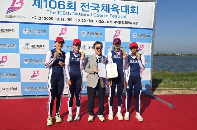[참좋은뉴스= 기자] 광주광역시체육회는 ‘제106회 전국체육대회’ 조정 여자18세이하부 쿼드러플스컬 경기에서 광주체고 조정팀이 3연패를 달성했다고 밝혔다.