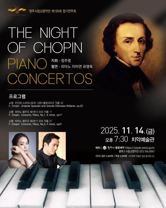 [참좋은뉴스= 기자] 원주시립교향악단은 오는 14일 오후 7시 30분, 치악예술관에서 제195회 정기연주회 ‘The Night of CHOPIN’을 개최한다.