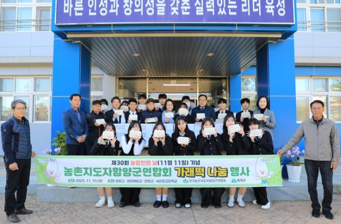 [참좋은뉴스= 기자] 농촌지도자 함양군연합회는 다가오는 ‘농업인의 날(11월 11일)’을 앞두고 11월 10일 관내 4개 고등학교를 방문하여 ‘사랑의 가래떡 나눔’ 행사를 개최했다.