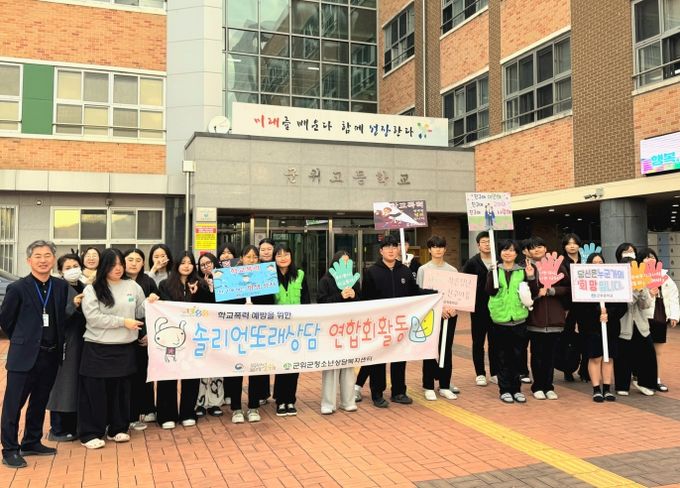 [참좋은뉴스= 기자] 군위군청소년상담복지센터는 지난 11월 11일 군위중·고등학교에서 등교 시간을 이용하여 또래상담자들과 함께 전교생을 대상으로 ‘학교폭력예방 캠페인 및 등굣길 응원’을 운영했다.