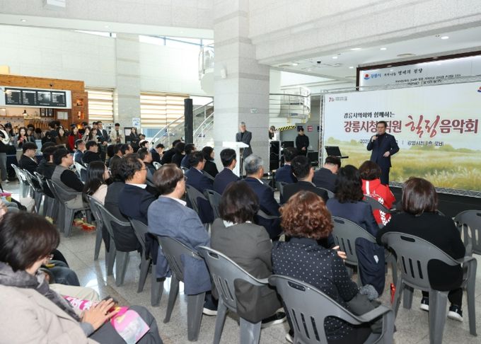[참좋은뉴스= 기자] 강릉시는 11일 점심시간을 활용하여 시청 1층 로비에서 직원들을 위한 힐링음악회를 개최한다.