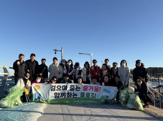 [참좋은뉴스= 기자] 울산교육연수원은 지난 11일 북구 정자동 일대에서 ‘걸으며 줍는 즐거움! 함께하는 쓰담 달리기(플로깅)’를 주제로 환경 정화 활동을 했다.
