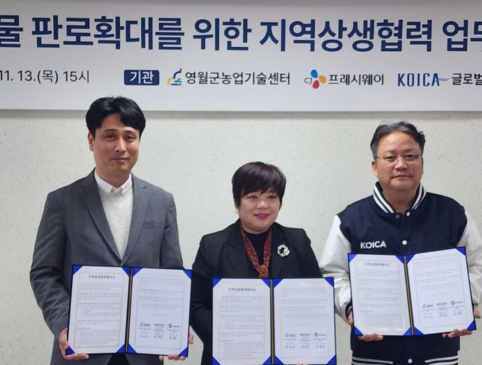 [참좋은뉴스= 기자] 영월군농업기술센터는 2025년 11월 13일 목요일 오후 3시, 영월군농업기술센터 2층 회의실에서 CJ프레시웨이, KOICA글로벌인재교육원과 함께 지역상생협력 업무협약을 체결했다.