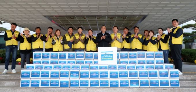 태안군에 따르면, 태안군운영위원회는 14일 군청 현관에서 김태운 회장 및 회원 등 20여 명이 참석한 가운데 기탁식을 갖고 2kg 김치 100박스(총 200kg, 169만 원 상당)를 군에 전달했다.
