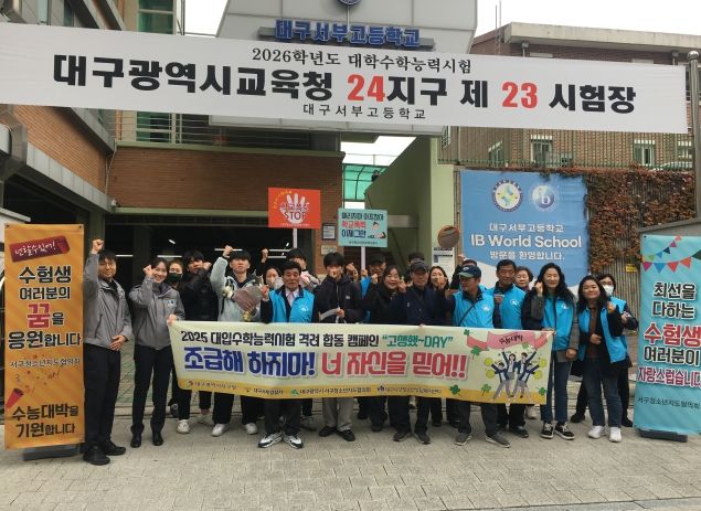 [참좋은뉴스= 기자] 대구 서구 청소년지도협의회(회장 황만태)는 지난 12일, 서부고등학교 정문에서 학생들의 수능 예비 소집일 시간에 맞춰 수험생 응원 및 선도·보호 합동 캠페인을 실시했다.