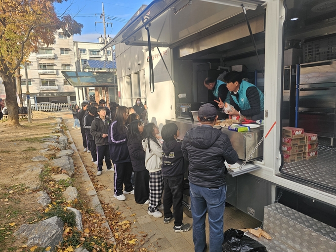 특히 이날 KT그룹 희망나눔재단이 운영하는 ‘빨간밥차’가 참여해 아이들이 좋아하는 메뉴를 제공하며 현장을 찾은 주민들을 따뜻하게 응원했다. 추운 날씨에도 어린이·청소년과 봉사자들이 어우러져 놀이터는 활기와 웃음으로 가득 찼다.