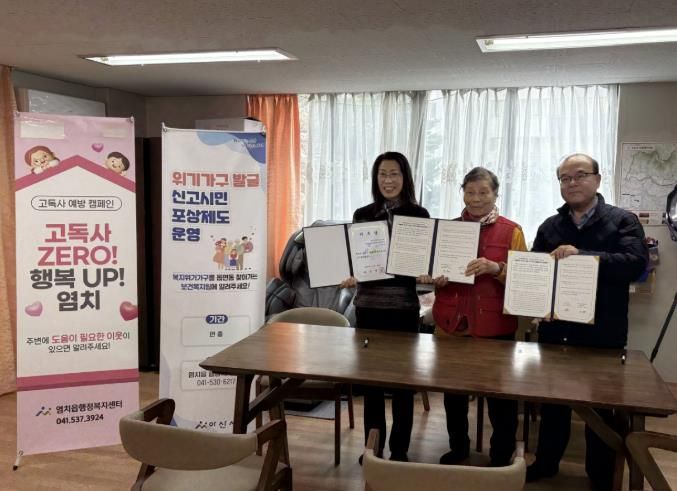 심용근 염치읍장은 “이번 협약은 지역 복지의 최일선에서 민관이 함께 대응하는 중요한 기반”이라며 “앞으로도 협력 체계를 강화해 고독사 예방과 위기가구 보호에 실질적인 성과를 만들어 가겠다”고 밝혔다.