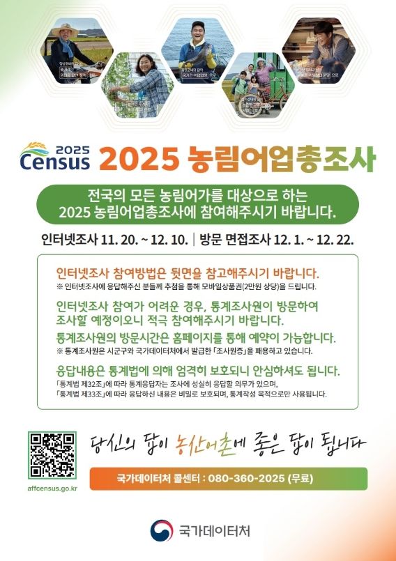 [참좋은뉴스= 기자] 강릉시는 11월 20일 목요일부터 오는 12월 22일 월요일까지 '2025 농림어업총조사'를 실시한다.