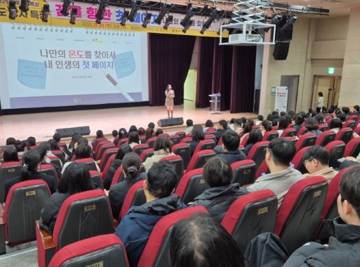 [참좋은뉴스= 기자] 양산시는 지난 20일 이투스 수능강사 이도 강사를 초청해 ‘나만의 온도를 찾아서, 내 인생의 첫 페이지’라는 주제로 ‘2025 진로진학 특강’을 물금청소년문화의집 공연장에서 개최했다.