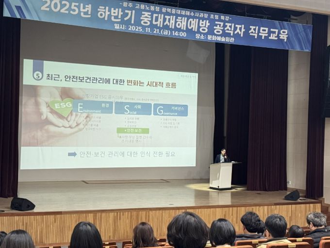 [참좋은뉴스= 기자] 전남 구례군은 지난 21일 문화예술회관에서 광주 지방노동청 광역중대재해수사과장을 초청해 ‘2025년도 하반기 중대재해 예방 공직자 직무교육’을 실시했다고 밝혔다.
