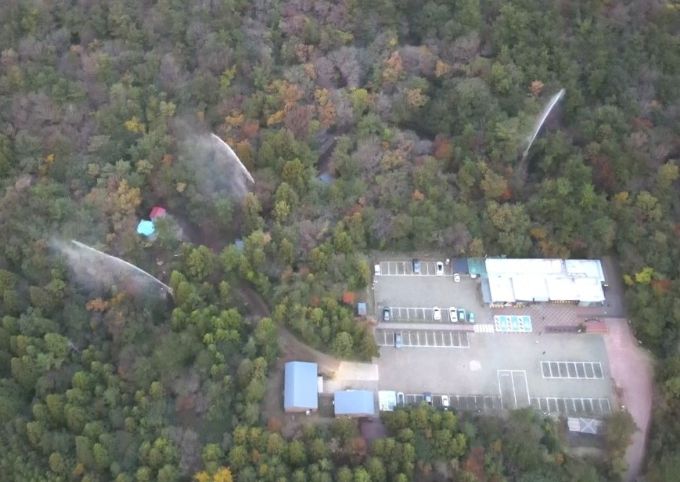 산불소화시설은 산불 발생 시 진화 헬기나 진화차 등이 도착하기 전 초기 확산을 억제함으로써 피해를 최소화하고, 산림휴양시설과 이용객의 안전을 보호하기 위해 설치하는 장비다.
