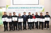 [참좋은뉴스= 기자] 완주군이 늘어나는 환경 민원과 도시화로 인한 오염 예방을 강화하기 위해 28일 ‘명예환경감시원 위촉식 및 교육’을 실시했다. 완주군청 중앙도서관 3층 다목적강당에서 열린 행사에는 명예환경감시원과 환경위생과 직원 70여 명이 참석해 신규 위촉식과 전북녹색환경지원센터와 연계한 환경감시 교육이 진행됐다. 명예환경감시원은 읍·면별 4~5명씩 총 56명이 위촉됐으며, 이들은 환경오염행위 감시, 주민 계도, 순찰 등 사전 예방 활동을 맡게 된다. 이장협의회장, 주민자치위원장, 공동주택 입주자대표 등 지역 리더들이 참여해 책임성과 대표성을 강화했다. 인구 10만 명을 넘어서며 도시민 유입이 늘고 있는 완주군은 축사 악취, 대기오염 등 도시화에 따른 환경 민감도가 높아 자율적 환경 감시와 신속한 민원 대응의 중요성이 커지고 있다. 유희태 완주군수는 “군민의 삶의 질 향상을 위해 축사 매입, 악취방지시설 설치 등 환경오염 방지에 최선을 다하고 있다”며 “명예환경감시원들이 지역의 환경지킴이라는 자부심을 가지고 환경감시와 주민 계도 활동 등 맡은 역할을 충실히 해주시길 바란다”고 말했다. [