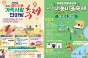 [참좋은뉴스= 기자] 대전 동구는 오는 18일 구 대표 마을 축제인 ‘제4회 가양1동 봉이마을 가족사랑 한마당 축제’와 ‘제7회 대동 마을축제’를 잇따라 개최한다고 15일 밝혔다. 먼저, 가양1동 자생단체협의회(회장 오경진) 주관으로 얼리는 ‘제4회 봉이마을 가족사랑 한마당 축제’가 오전 11시부터 가양초 운동장에서 진행된다. 올해로 4회를 맞은 이번 축제는 주민 모두가 함께 즐기고 소통하는 지역 화합의 장으로 꾸며지며, 식전 풍물‧사물놀이 공연을 시작으로 ▲대전아트필하모닉오케스트라 금관 앙상블 ▲버블쇼 ▲댄스 및 색소폰 공연 ▲난타공연 등 다채로운 무대가 펼쳐진다. 또한, 주민이 직접 참여하는 가족 장기자랑과 제기차기·투호 결승전, 먹거리 장터, 도자기 공방, 아로마 체험 등 체험과 즐길거리가 어우러진 프로그램이 마련돼 온 가족이 함께 즐길 수 있다. 이어, 오후 1시부터는 대동성당 앞 대동천변에서 대동골목축제추진위원회(위원장 신영국) 주관으로 ‘제7회 대동 마을축제’가 열린다. ‘대동단결 주민 화합 한마당’을 주제로 진행되는 이번 축제는 개막식과 기념식을 시작으로 ▲대동 예라미합창