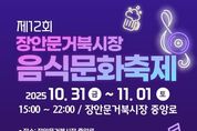 [참좋은뉴스= 기자] 수원 장안문거북시장 중앙로에서 10월 31일부터 11월 1일까지 ‘제12회 장안문거북시장 음식문화축제’가 열린다. 10월 31일 오후 3시부터 식전행사가 열리고, 오후 6시 개막식과 축하공연이 진행된다. 11월 1일에는 지역 예술단체와 시민 동아리의 공연과 함께 댄스·노래 경연대회 ‘우리동네 오디션’이 이어진다. 행사 기간에 시장 내 주요 거리에서는 상인들이 준비한 다양한 음식과 특산품을 만나볼 수 있다. 장안문 거북시장의 전통 막걸리 ‘장안문 별주’ 홍보부스와 장안문 시장 활성화 프로젝트를 진행하는 아주대학교 파란학기제 ‘터틀랩스’팀의 팝업스토어 등이 운영될 예정이다. 수원시 관계자는 “전통시장 활성화를 위해 애써주시는 상인회에 감사드린다”며 “지역경제 활성화를 위한 지원을 아끼지 않겠다”고 말했다. [뉴스출처 : 경기도 수원시]