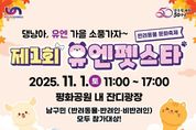 [참좋은뉴스= 기자] 부산광역시 남구는 오는 11월 1일, 구 개청 50주년을 기념해 평화공원 내 잔디광장에서 '제1회 유엔펫스타(Pet Star, 반려동물 문화축제'를 개최한다고 밝혔다. 이번 축제는 반려동물과 반려인, 그리고 비반려인 모두가 함께 어울리며 반려 문화에 대한 인식을 개선하고, 올바른 반려동물 문화 정착을 도모하기 위해 마련됐다. 행사는 11시부터 오후 5시까지 진행되며, 남구민 누구나 참여할 수 있는 다채로운 프로그램이 운영된다. 개막식을 시작으로 반려동물과 함께하는 △반려동물과 함께하는 플로깅 ‘유엔펫로깅’(사전등록 필요) △반려동물 문화교실 ‘펫티켓토크’△반려동물 퀴즈대결 ‘댕퀴즈 온더유엔’ △어질리티 경주 및 기다려 대회로 구성된 ‘댕냥이 가을운동회’ 등이 펼쳐질 예정이다. 또한 행사장 내에는 포토존, 유엔펫 상담소(댕냥병원 · 동물등록), 펫타로 체험, 양말목 키링·허브볼 만들기 체험부스 등 가족 단위 참가자들이 즐길 수 있는 다양한 체험 공간도 마련된다. 참여자는 반려동물의 목줄을 반드시 착용하고 배변 봉투를 지참해야 하며, 주차 공간이 협소하므로 대중교통