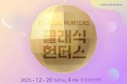 [참좋은뉴스= 기자] 문경시는 오는 12월 20일 오후 4시, 문경청년센터에서 **제2회 온가족 열린음악회 ‘클래식 헌터스(Classic Hunters)’**를 개최한다. 이번 음악회는 클래식한스푼이 주관하고 문경시가 후원하며, 연말을 맞아 시민에게 문화 향유 기회를 제공하기 위해 마련됐다. 1부는 한두리 국악단, 클래식한스푼 하이든바이올린 앙상블 및 플루트 앙상블이 참여해 ‘학교 가는 길’, ‘Can’t Help Falling in Love’, ‘My Way’, ‘기억의 습작’ 등 친숙한 레퍼토리를 연주한다. 2부에서는 문경시민오케스트라가 ‘A Whole New World’, ‘Viva La Vida’, 라데츠키 행진곡 등 다양한 장르의 곡을 선보일 예정이다. 고경남 클래식한스푼 대표는 “시민과 함께 음악적 성장을 만들어가는 시간”이라며 지역 문화 기반의 확장을 기대한다고 말했다. 신현국 문경시장과 이정걸 문경시의회 의장은 축사를 통해 시민 중심의 문화 활동을 지속적으로 지원하겠다는 뜻을 밝혔다. 문경에서 펼쳐지는 겨울 음악 축제 ‘클래식 헌터스’는 2025년을 마무리하며 시민들에게 따뜻한 위로와 희망을 전