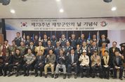[참좋은뉴스= 기자] 금산군재향군인회(회장 안기전)는 지난 24일 금산다락원 소공연장에서 제73주년 재향군인의 날 기념행사를 개최했다. 이날 행사는 박범인 금산군수, 김기윤 금산군의회 의장, 노경수 금산경찰서장, 김태형 금산소방서장, 서상석 1970부대 2대대 예비군 지역대장을 비롯해 보훈단체장 및 향군회원 등 100여 명이 참석한 가운데 국민의례, 유공자 표창, 기념사 및 축사 등이 진행됐다. 이날 재향군인회 발전과 지역사회 안보 계도 전개 등 적극적인 사회봉사활동에 기여한 유공자 13명에게 금산군수, 금산군의회 의장 등의 표창을 수여해 그 노고를 기렸다. 안기전 회장은 “향군 회원들의 협조가 있어 이번 기념행사가 무사히 개최될 수 있었다”며 “앞으로도 금산군재향군인회가 군민에게 신뢰받는 안보단체로 거듭날 수 있도록 최선을 다하겠다”고 전했다. [뉴스출처 : 충청남도 금산군]