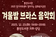 [참좋은뉴스= 기자] 김포시 통진도서관은 오는 12월 23일 저녁 7시부터 8시까지 다가오는 연말을 기념하여 온 가족이 함께 즐길 수 있는 브라스 음악공연을 운영한다. 이번 공연은 경기아트센터에서 지원하는 ‘찾아가는 문화복지공연’ 사업으로, 김포시 북부권 시민들을 대상으로 일상 가까이에서 문화예술을 만나는 기회를 제공하고, 지역 간 문화 격차를 완화하고자 기획했다. 이번 공연은 금관 5중주로 구성된 앙상블 코리안아츠의 풍성한 선율로 채워질 예정이며, 코리안아츠는 대한민국 국제관악제 홍보대사와 2018년 평창동계올림픽 개막식 《승리의 팡파레》를 연주하는 등 화려한 이력을 지닌 팀으로, 클래식은 물론 영화와 대중음악 등 다양한 장르를 넘나들며 새로운 음악적 시도를 이어가고 있다. 도서관 관계자는 “이번 공연은 영화 및 애니메이션 음악공연으로 누구나 쉽게 즐길 수 있으며, 이번 공연을 통해 온 가족이 따듯한 연말을 보내길 바란다”라고 말했다. [뉴스출처 : 경기도 김포시]