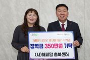 [참좋은뉴스= 기자] (사)해피맘 충북센터은 16일 어려운 가정환경에도 불구하고 학업에 열중하는 청주지역 학생을 지원하기 위해 청주시에 장학금 350만원을 기탁했다. 이날 오전 임시청사 직지실에서 진행된 기탁식에는 이범석 청주시장과 남현순 (사)해피맘 충북센터 센터장이 참석했다. 이번 장학금은 지난 11월 (사)해피맘 충북센터가 개최한 ‘해피 드림 온 자선바자회’의 수익금으로 마련됐다. 장학금은 어려운 환경에서도 성실한 자세로 학업에 열중하고 있는 7명의 초・중・고등학생에게 전달할 예정이다. 남현순 센터장은 “회원들의 노력으로 마련한 자선바자회 수익금을 뜻깊은 곳에 사용할 수 있어서 기쁘게 생각한다”며 “앞으로도 회원들과 함께 활발한 봉사활동을 이어가겠다”고 말했다. 이범석 시장은 “우리 지역 취약계층을 위해 항상 노력해주시는 해피맘 충북센터 회원들게 감사드린다”며 “장학금은 학생들의 학업 정진을 위해 사용되도록 소중히 전달하겠다”고 답했다. (사)해피맘 충북센터는 회원 170여명으로 구성되어 있는 자원봉사단체로 한부모 가정 지원사업, 각종 사회봉사 및 기부사업 등 꾸준한