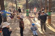[참좋은뉴스= 기자] 울산광역시교육청은 지난 29일과 6일 울주군 선바위 공원 일원에서 울산지역 영유아 가족을 대상으로 자연 속 놀이 체험 프로그램인 ‘솔솔 팝업 놀이터-숲 밧줄 생태 놀이’를 운영했다. 이번 행사는 영유아들이 보호자와 함께 지역의 자연환경을 마음껏 즐기고, 다양한 신체 활동을 경험하며 몰입의 즐거움과 스스로 해냈다는 자신감을 경험할 기회를 제공하고자 마련됐다. 이날 행사에는 울산에 거주하는 0~5세 영유아와 보호자 등 가족 167팀이 참여했으며, 안전한 환경에서 자유롭고 충분한 체험을 즐길 수 있도록 하루 3회차로 나눠 진행됐다. ‘솔솔 팝업 놀이터’는 아이들의 모험심과 창의력을 자극하는 다채로운 프로그램으로 꾸며졌다. 참가 가족들은 숲에서 즐기는 밧줄 놀이로 짚라인, 외줄 다리, 바구니 그네, 무지개 트램펄린과 자연물로 만드는 크리스마스 장식, 대나무 놀이 등 생태 활동을 함께하며 가족 간의 유대감을 쌓고 즐거운 추억을 만들었다. 특히, 자연에서 즐기는 밧줄 놀이는 아이들이 자기의 신체 움직임을 조절하며 도전 의식을 키울 수 있어 학부모들의 큰 호응을 얻었다. 울