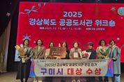 [참좋은뉴스= 기자] 구미시는 지난 15일 열린 ‘2025 경상북도 공공도서관 워크숍’ 내 ‘공공도서관 운영평가 시상식’에서 도내 43개 공공도서관 중 전체 1위를 차지했다. 그룹별 평가에서도 구미시립중앙도서관이 A그룹 대상을, 구미도시공사 소속 봉곡도서관이 B그룹 우수상을 받으며 2년 연속 두 개관이 동시에 수상하는 성과를 거두었다. 이번 평가는 △예산 △장서 △사서 △공간 △서비스 △협력 △경영계획 △우수사례 등 8개 항목, 13개 지표를 기준으로 전년도(2024년) 실적을 종합적으로 검토해 이뤄졌다. 구미시립중앙도서관은 예산과 장서 확충, 전문사서 배치, 대출·프로그램 운영 증가, 우수사례 선정 등 전 부문에서 고르게 높은 점수를 받으며 A그룹 최고 점수를 기록했다. 봉곡도서관 역시 서비스 프로그램 운영 강화와 지역 협력 기반 확대로 긍정적인 평가를 받았다. 구미시의 연이은 수상은 체계적인 도서관 운영과 꾸준한 인프라 투자, 시민 이용 활성화 노력이 반영된 결과다. 구미시는 도서관을 문화·학습·소통이 결합된 지역 플랫폼으로 키우기 위해 공간 개선, 자료 확충, 디지털 기반 서비스 확대 등을 지속적으로 추진해 왔다.