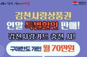 [참좋은뉴스= 기자] 김천시는 오는 12월 한 달 동안 김천사랑상품권을 18% 특별 할인 판매한다고 28일 밝혔다. 시는 이번 특별 할인판매로 연말 소비 촉진을 비롯해 침체된 지역 상권 에 활력을 불어넣고, 지역경제 회복에도 긍정적인 영향을 미칠 것으로 기대하고 있다. 특히, 시는 12월 한 달 동안 진행되는 이번 특별 할인판매 기간에 한하여 개인 구매 한도를 월 70만 원으로 확대해 더 많은 시민이 혜택을 누릴 수 있도록 할 방침이다. 이번 연말 특별 할인판매로 연말 선물·장보기 등 가계 지출이 늘어나는 시기에 실질적인 가계 부담을 덜어주는 동시에 지역 내 소비 확대로 이어져 지역 상권 전반에 크게 도움이 될 전망이다. 다만, 예산 소진 시 특별 할인판매 기간 중이라도 조기 종료될 수 있으니, 혜택을 놓치지 않으려면 빠른 참여가 필요하다. 김천시 관계자는 “연말을 맞아 진행하는 김천사랑상품권 특별 할인판매가 상권 활성화와 지역경제에 실질적인 보탬이 되기를 바라며, 많은 시민이 혜택을 누리고, 조금 더 따뜻한 연말을 보내는 데 도움이 됐으면 한다.”라고 말했다. [뉴스출처 : 경상