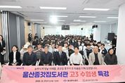 [참좋은뉴스= 기자] 울산 중구에서 운영하는 울산종갓집도서관이 12월 17일 오전 10시 울산종갓집도서관 강의실에서 ‘고3 수험생 특강’을 진행했다. 이번 특강은 울산종갓집도서관과 함월고등학교가 지난 12월 12일 체결한 ‘청소년 독서문화 진흥을 위한 업무협약’의 일환으로 마련됐다. 이날 행사에는 김영길 중구청장과 김백수 함월고등학교 교장, 중구 도서관운영위원회 위원, 함월고등학교 3학년 학생 등 200여 명이 참석했다. 이번 특강에서는 『나는 대학 생활이 처음인데요』, 『한 권으로 끝내는 스피치』 등을 저술한 장한별 작가가 강사로 나서, 학생들을 따뜻하게 격려하고 대학 생활과 사회 생활에 도움이 되는 다양한 조언을 건넸다. 이어서 참석자들은 맞춤 색상(퍼스널컬러) 체험을 통해 자신의 피부 색깔과 분위기에 어울리는 색상을 파악하고 좋은 인상을 만드는 법 등을 알아봤다. 중구 관계자는 “이번 특강이 미래를 향해 새로운 걸음을 내딛는 학생들에게 도움이 되길 바란다”며 “앞으로도 청소년 독서 문화 확산을 위한 다양한 강좌를 지속적으로 운영하겠다”고 밝혔다. [뉴스출처 : 울산시중구]