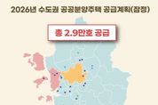 [참좋은뉴스= 기자] 국토교통부와 4개 공공기관은 ’26년 수도권 공공택지에서 총 2.9만호 규모의 공공분양주택을 순차적으로 공급할 계획이라고 밝혔다. 이번 공급 물량은 새정부 「주택공급 확대방안」(9·7대책)에서 발표한 수치(2.7만호) 대비 약 2천호 증가한 규모로, 판교(2.9만호)급 신도시를 하나 새로 조성한 것에 준하는 수준이다. 특히, 4개 공공기관의 올해 분양 물량(2.2만호)보다 32.2% 증가했고, 최근 5년간 평균 수도권 분양 물량(1.2만호)의 약 2.3배 수준으로, 공공 부문의 착공 확대 노력의 성과가 가시화되며, 공급 확대 국면으로 전환되고 있음을 보여준다. 내년에 분양될 단지들을 살펴보면, 지역별로는 △서울 1.3천호, △인천 3.6천호, △경기 23.8천호로 분포되어 있고, 주요 지구별로는 △3기 신도시 7.5천호, △2기 신도시 7.9천호, △기타 중소택지 13.2천호의 공공주택이 분양될 예정이다. 3기 신도시에서는 △고양창릉(3,881호), △남양주왕숙(1,868호), △인천계양(1,290호), 2기 신도시에서는 △광교(600호), △평택고덕(5,134호), △화성